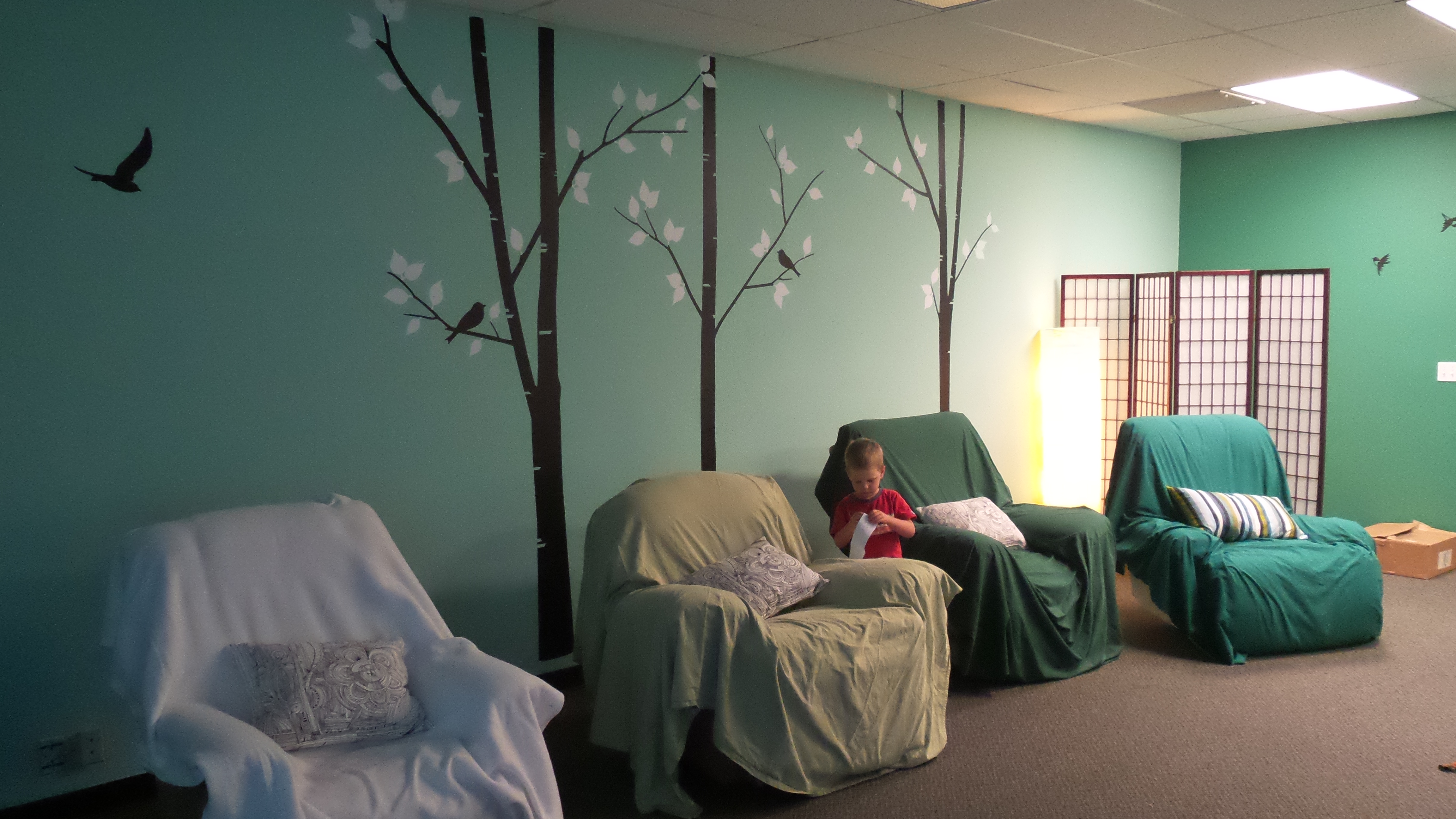 20140701_143836 Published July 1, 2014 at 4608 × 2592 in Clinic Setup Photo Gallery Max helps put up the wall art